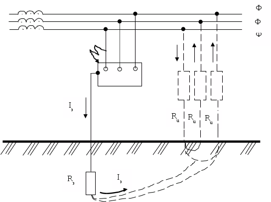Рис. 7.1 – Принципиальная схема защитного заземления.