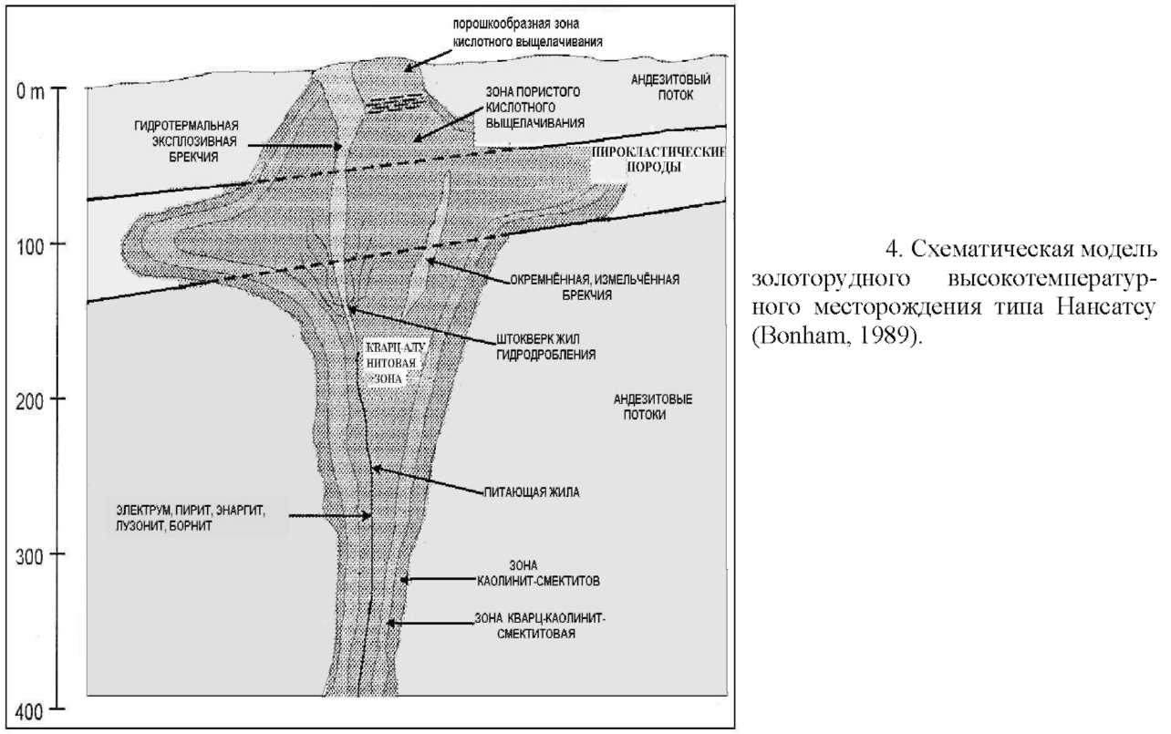 Вторичная проницаемость, обычно, важнее первичной при образовании эпигенетических месторождений, но иногда бывает и наоборот. Например, рассматриваемые здесь рудоносные туфы хай сульфидейшн в Нансатсу, Япония (рис.4) и, возможно, часть минерализации лоу сульфидейшн в Тока Тиндунг (Wake et al., 1996). Но в большинстве случаев вторичная проницаемость более важна. Имеется несколько причин этому феномену: