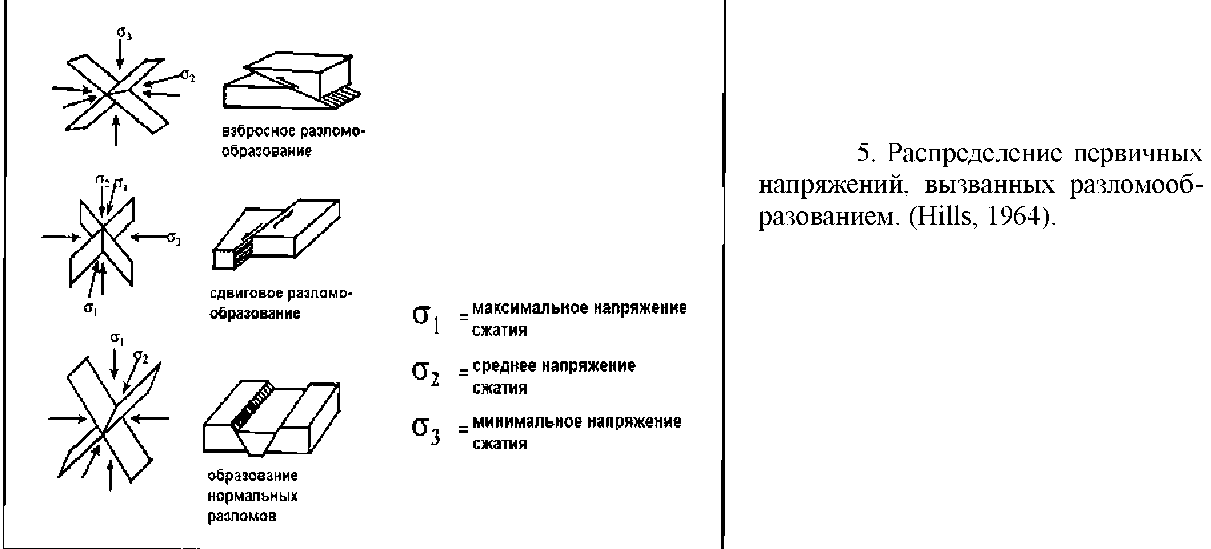 Случаи, когда оба горизонтальных направления поля напряжений превосходят вертикально направленные напряжения (рис.5а), которые характерны для глубоких метаморфических зон, редки на малых глубинах у границ тектонических плит. Они характерны для мест локализации эпитермальных и порфировых месторождений.
