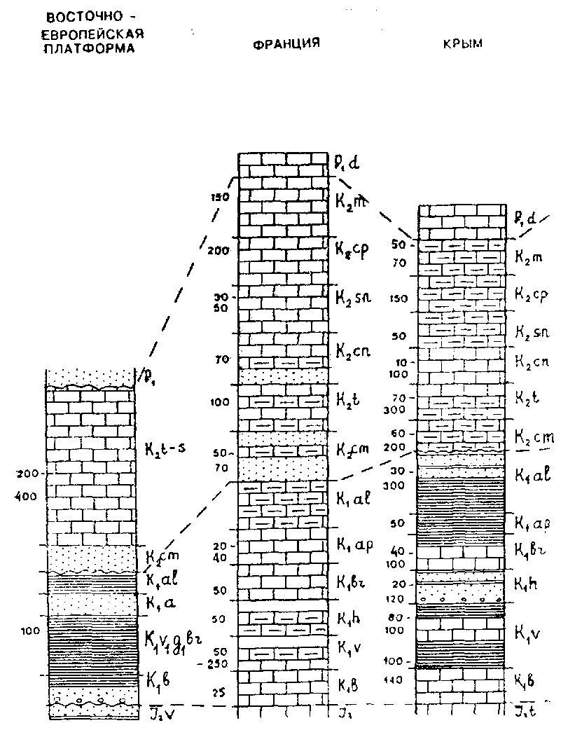 Рис.1. Сопоставление сводных разрезов меловой системы. Условные