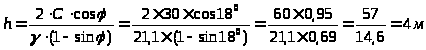 Максимально возможная высота вертикальной части откоса, представленного полутвердыми глинами, определяется по формуле: