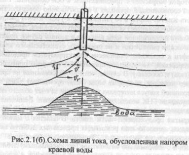 Рис.2.1(a). Схема линий тока, обусловленная напором подошвенной воды