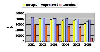Диаграмма 2 Объем ледяного сталагмита "Заячьи ушки" с 2001 по 2006г.