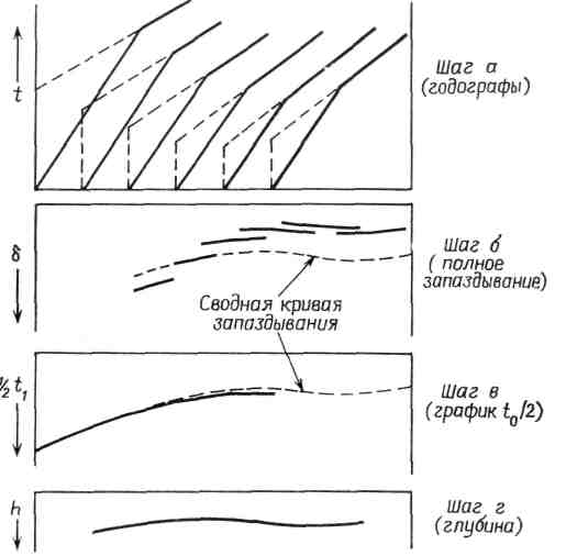В литературе описано много способов интерпретации, использующих время запаздывания. Например, такие способы предложены Гарднером, Бартелмсом, Таррантом, Виробеком, Барри. Рассмотрим только три последних. Методы, описанные Виробеком и Таррантом, подходят для одиночных годографов, метод Барри дает наилучшие результаты в случае встречных годографов.
