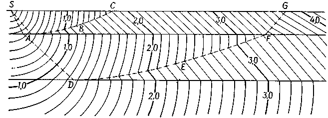 где >S> и >g> называют временами запаздывания в пункте взрыва и в пункте приема соответственно, поскольку они связаны с участками траектории, идущими вниз от источника и вверх к приемнику.