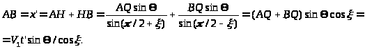 Вывод основной формулы. Времена прихода t>1> и t>2>обеих преломленных волн в произвольную точку наблюдения S(x), если учитывать ход лучей на рис. 12 (проницание отсутствует), определяется соотношениями: