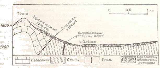 Рисунок 2 – Поперечный разрез центральной части оползня на горе Тертл [12]