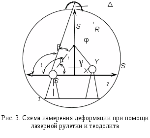 гдеX, Y – координаты центра тоннеля относительно точки стояния инструмента;