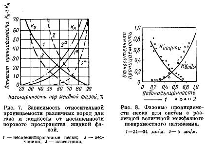 Существенное влияние распределения остаточной воды в поровом пространстве оказывает на фазовые проницаемости породы для нефти, воды и газа. Многие другие явления, происходящие в пласте, как-то: смачиваемость пород вытесняющими жидкостями, интенсивность капиллярных процессов, количество и формы существования нефти, остающейся в поровом пространстве пласта после истощения пластовой энергии, и др., во многом также зависят от первоначального распределения жидкостей в пласте.
