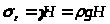 где σ — вертикальная составляющая напряжений в н/м2; γ — удельный вес породы в н/м3; Н — глубина залегания пласта в м; ρ— плотность породы в кг//м3; g — ускорение силы тяжести в м/сек2.