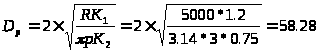 Внутренний диаметр трубопровода рассчитывается по формуле: