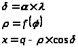 В этой проекции применяются две системы координат: плоские полярные координаты и и прямоугольные координаты х и у. Связь между координатами по следующим формулам: