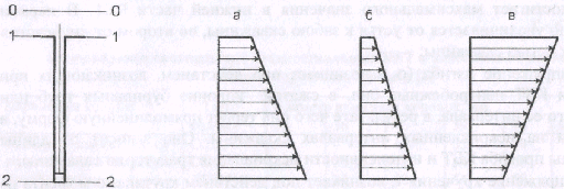 Рис. 2 Положение сечения «0 – 0» и эпюры напряжений, действующих в бурильных трубах при бурении с дополнительной нагрузкой: