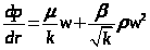 где β-дополнительная константа пористой среды определяемая экспериментально.