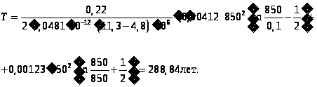 Время вытеснения всей нефти водой T найдем, подставив в уравнение (12)