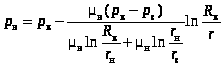 Распределение давления в водоносной и нефтеносной областях найдем из уравнений (1) и (3), подставив в них значения давления на границе раздела p из (5). В результате получим