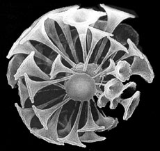 Примерно 15 лет назад диатомовые водоросли привлекли внимание химиков, специализирующихся в области нанотехнологии. Помимо микроскопических размеров (рисунок 2), уникальным свойством диатомовых водорослей оказалось размножаться необычайно высокими темпами, и их разнообразие форм, и наличие крупных месторождений диатомита. Правда, наибольшее значение придается искусственно получаемым, «стандартизованным» материалам с кремнеземными структурами строго определенной формы. Они могли бы использоваться как уникальные фильтры, катализаторы и сорбенты с заданным размером пор, микрокапсулы для лекарств, упрочняющие наполнители композитов, дифракционные решетки оптических датчиков и др. Еще более захватывающие возможности открывает создание структур, повторяющих трехмерный кремнеземный скелет, но имеющих иной химический состав. Задача их создания к простым не относится: ведь кремнезем нерастворим в обычных минеральных кислотах, кроме фтористоводородной, и устойчив ко многим химическим реагентам. Недаром стеклянная посуда (а основа стекла – кремнезем и силикаты) много веков верой и правдой служит исследователям в химических лабораториях.