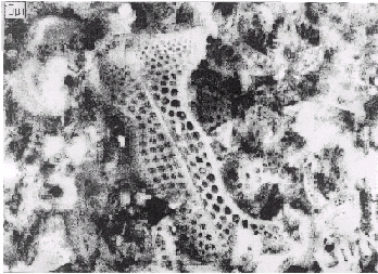 Успеху способствовало то, что оба тетрафторида летучи (TiF>4> сублимирует при нагревании до 285 °С, а SiF>4> – всего при 91 °С). Насколько полно при этом воспроизводится форма микрообразования можно увидеть на приведенной ниже фотографии (рисунок 3)