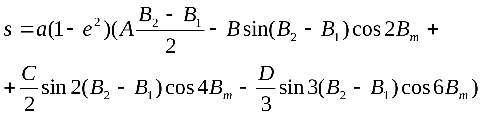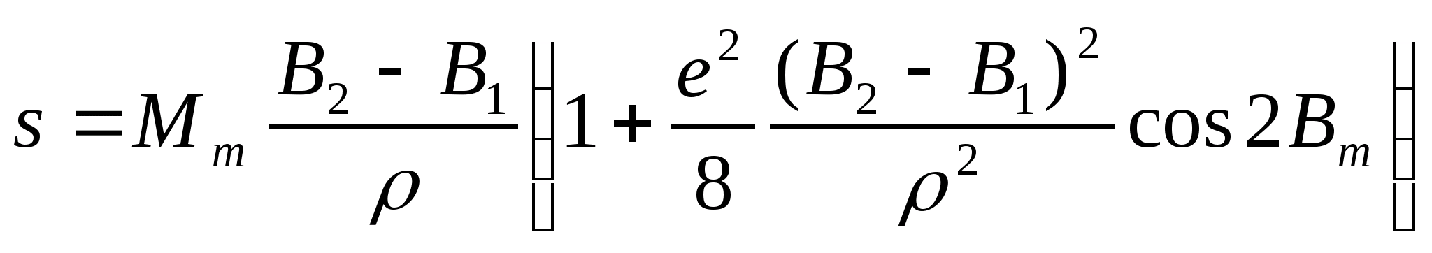 Формула для довжини дуги меридіану при обчисленнях в тріангуляції на віддалі порядку сотень кілометрів: