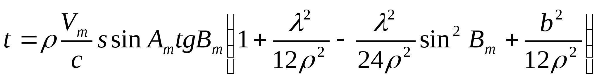 Радіус кривизни меридіану перерізу M>m> обчислюється за середньою широтою B>m>.