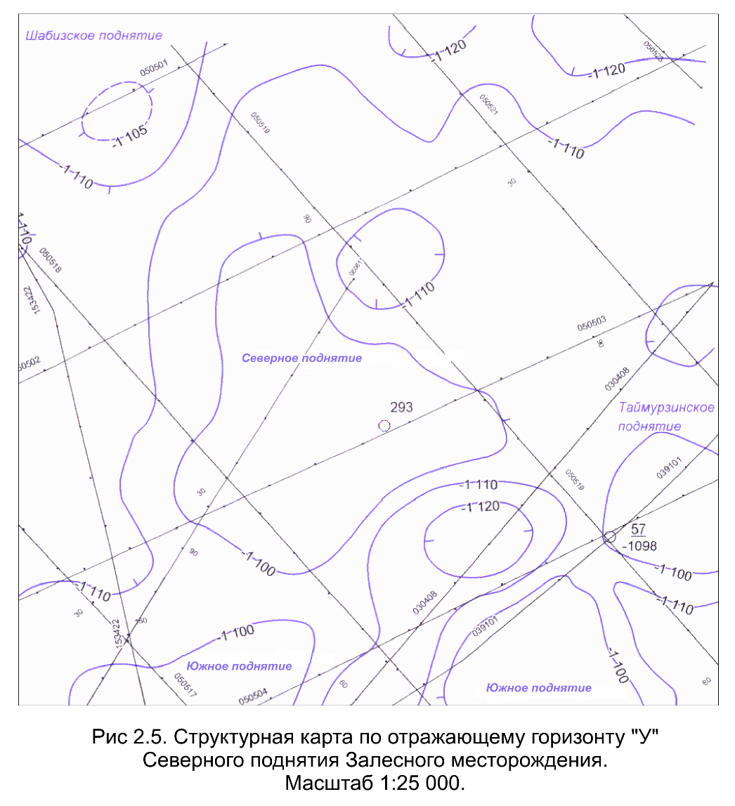 Структурная карта по отражающему горизонту "У" Северного поднятия Залесного месторождения (Рис. 2.5).