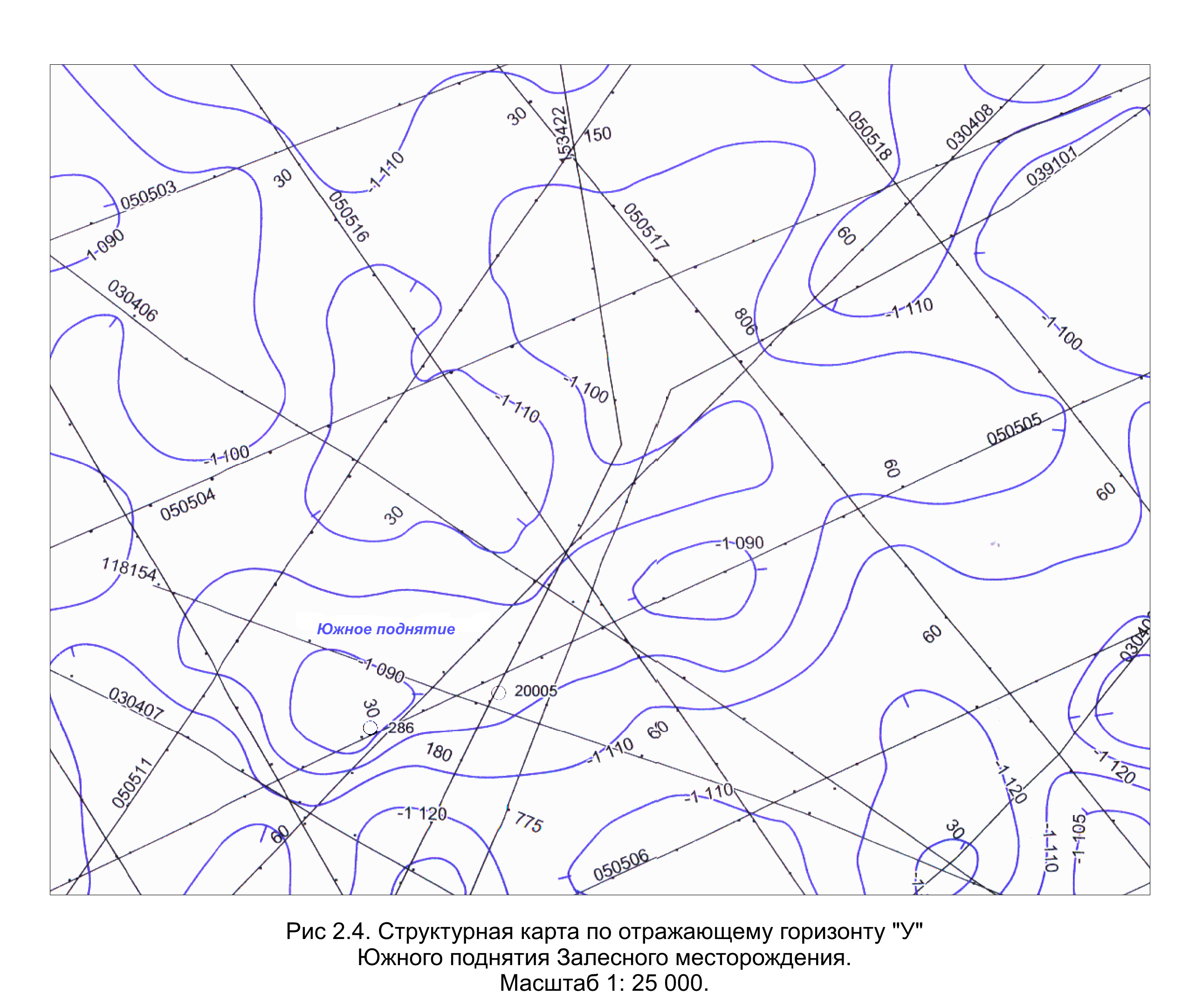 Структурная карта по отражающему горизонту "У" Южного поднятия Залесного месторождения (Рис. 2.4).