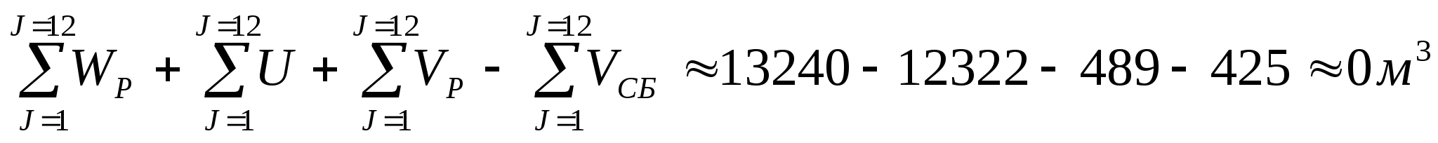 Окончательный этап – расчет потерь. Принимаем, что водохранилище будет работать по второму варианту регулирования. Вычислим средний объем воды в водохранилище за каждый месяц при принятом варианте объема (графа 10). По объемной кривой находим среднюю площадь водного зеркала (графа 11). Вычисляем полезный и полный объем водохранилища, а так же наполнения и сбросы но с учетом потерь . Вычисляем полную отдачу воды по формуле (13 графа).