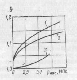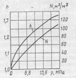 На рис. 3 показана зависимость величины объемного коэффициента от давления насыщения для некоторых месторождений. На рис. 4 приведены значения растворимости газа в нефти и объемного коэффициента пластовой нефти в функции давления.
