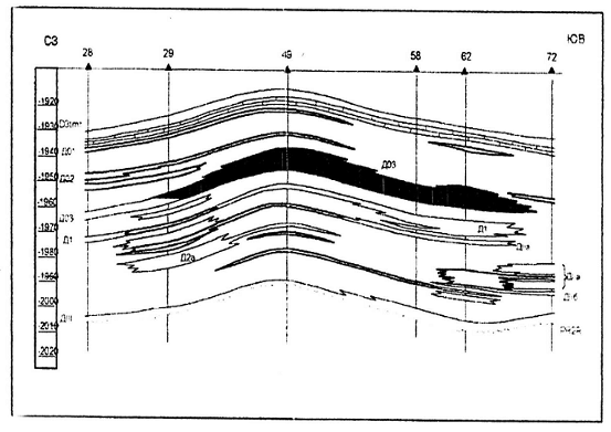 Покрышкой для пласта ДI служат глины, аргиллиты и глинистые известняки кыновского и саргаевского горизонтов, описанные выше