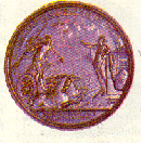 Композиция изображений и надписи на офицерских и солдатских медалях за Гангут, на оборотной стороне - схема построения русского галерного авангарда, участвовавшего в бою, и шведского отряда контр-адмирала Н.Эреншильда в тот момент, когда русские суда перешли в решительную атаку. Здесь же указана и дата