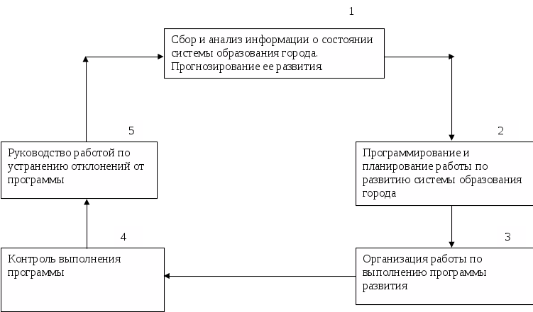 Разработка программ развития системы образования города, управление процессами ее совершенствования и обновление на основе этих программ.