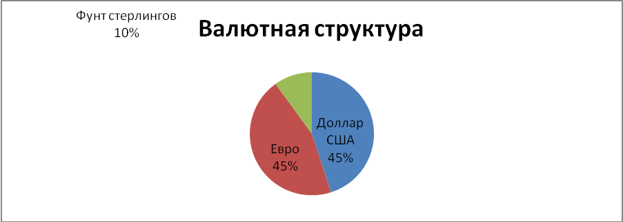 Срок до погашения долговых обязательств иностранных государств на день их приобретения (день формирования портфеля) находится в диапазоне, ограниченном следующими сроками (в годах): минимальный срок – 0, 25, максимальный срок – 3. В настоящее время средства Фонда размещаются согласно следующей валютной структуре: