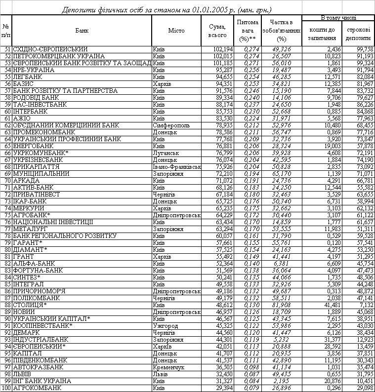 - аналіз поточного стану структури ресурсів в банківській системі України та місця коштів фізичних осіб в ній;