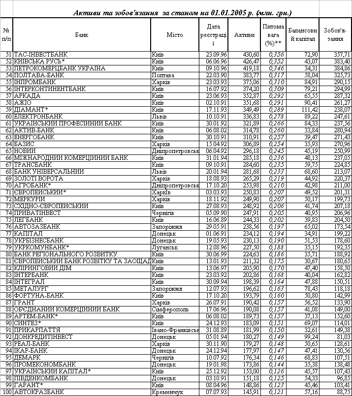 Показники ресурсної бази комерційних банків України станом на 01.01.2005