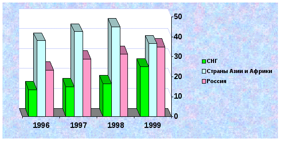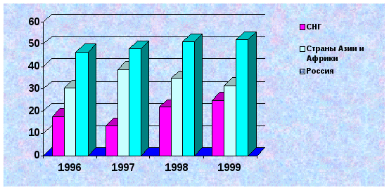 Одним из негативных последствий системных преобразований в странах Содружества явилась инфляция, отличающаяся исключительно "космическими" темпами. Только в период 1992-1994 гг. индекс потребительских цен вырос в Туркменистане в 4.2. тыс.раз.9 Среднегодовая инфляция рыночного курса туркменского маната в 1995 году составила 22-23 процента, а в 1999 году - 15 процентов.10