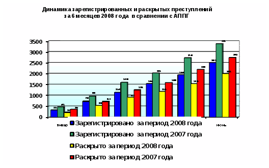 В истекшем году на территории округа зарегистрировано 365 994 преступлений, что на 0,9% меньше, чем в 2006 году. В первом полугодии текущего года зарегистрировано 2502 преступлений, что на четверть меньше аналогичного периода прошлого года (-25,8%) (см. рис. №2).
