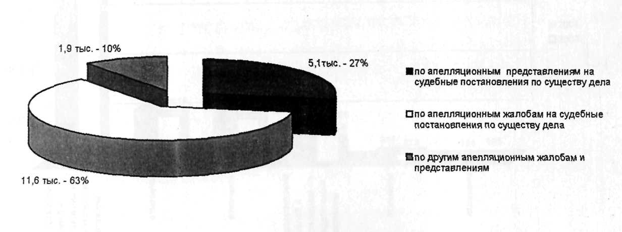 По данным судебной статистики Главного Управления организационно-правового обеспечения деятельности судов Судебного департамента при Верховном Суде РФ, в первом полугодии 2005 г. в районные суды в апелляционную инстанцию поступило 13 тыс. дел, что составило 7% от общего числа уголовных дел рассмотренных мировыми судьями, при этом удельный вес отмененных обвинительных приговоров составил 15% (1,1 тыс.) На кассационное рассмотрение поступило 145,9 тыс. уголовных дел, при этом количество отмененных обвинительных приговоров составило 7,3 тыс. (по числу лиц)1. Данные цифры явно свидетельствует о важной роли апелляционного и кассационного рассмотрения уголовных дел, как для граждан, так и для правоохранительных органов.