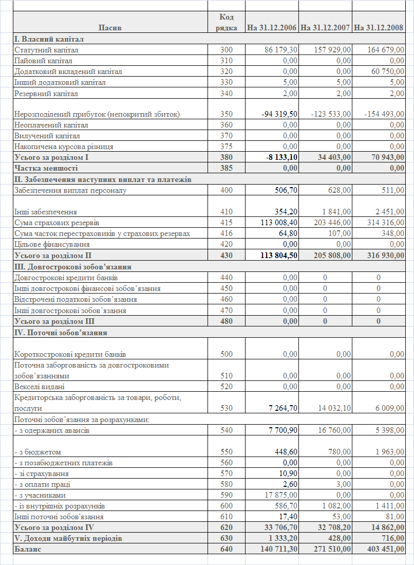 Балансово-фінансова звітність Закритого акціонерного товариства «Страхове Акціонерне Товариство «Граве Україна» у 2006 -2008 роках
