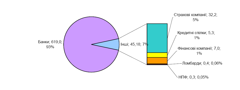 Враховуючи обсяг активів банківської системи України станом на 31.12.2008 року – 819 млрд.грн., частка страхових компаній по страхуванню життя та НПФ небанківського сектору на фінансовому ринку України становить всього 0, 6%. Таким чином, конкурентна позиція банків України по пропозиціям пенсійного накоплення коштів клієнтами на спеціальних довгострокових пенсійних рахунках в Україні є домінуючою.