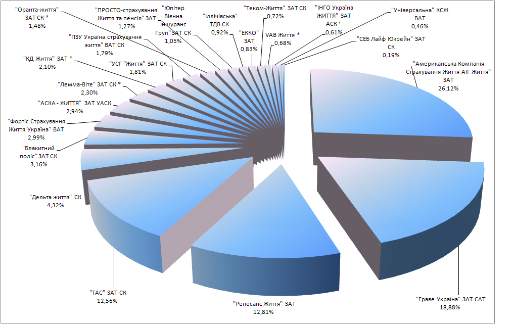 В Україні практично усі компанії-лідери зі страхування життя знаходяться в сфері контролю великих світових компаній. Наприклад, компанія Alico AIG Life має американський капітал, СК «Граве Україна», СК «Уніка Життя», ЕККО (life), «Юпітер страхування життя Іншуранс Груп та VAB Життя – австрійський, УСК «Дженерал Гарант Страхування життя» - італійський, СК «Форт Страхування Життя Україна» - голландський, СК «Ренесанс Життя», СК «ІНГО Україна-Життя та СК «ПРОСТО-страхування. Життя та пенсія» - російський, СК «ПЗУ Україна страхування життя» - польський, СК «Оранта-Життя» - казахський, SEB Life Ukraine – шведський.