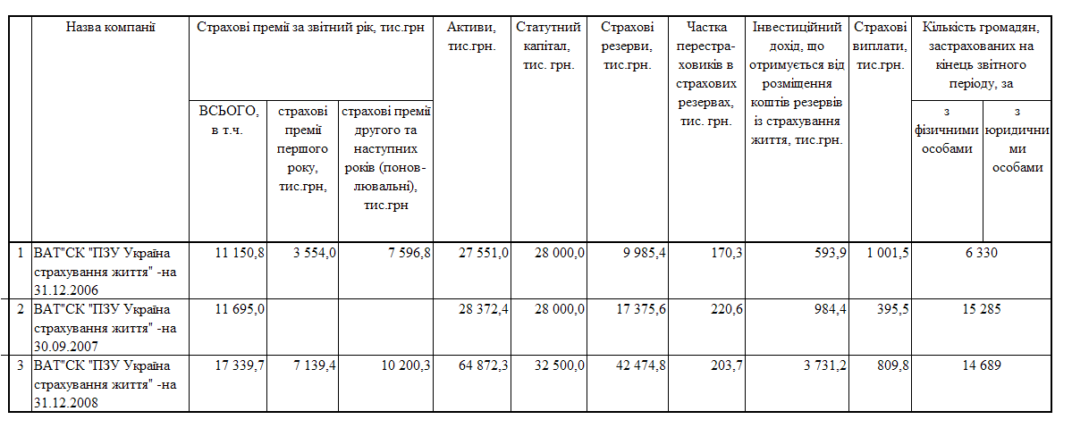 Як показав проведений в дипломному дослідженні аналіз, діяльність ВАТ "Страхова компанія "ПЗУ Україна страхування життя" у 2006 -2008 роках характеризується наступними показниками: