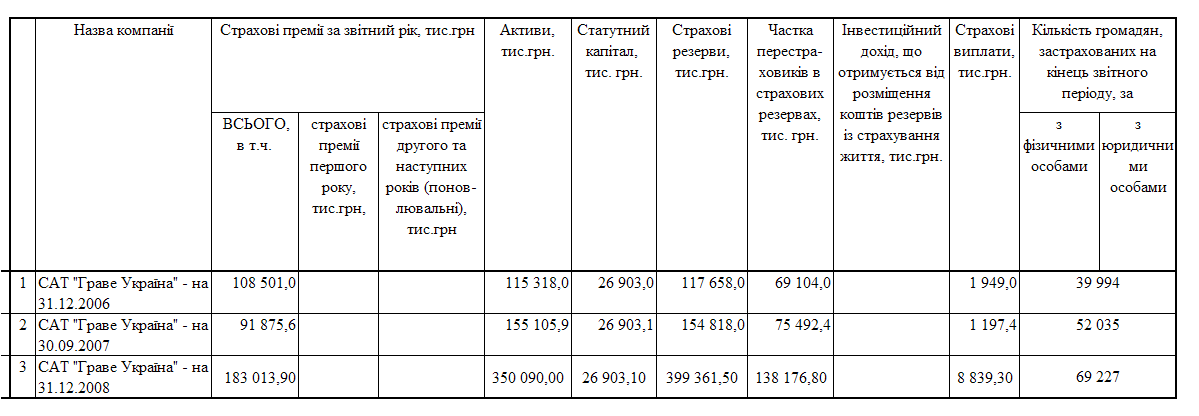 Як показав проведений в дипломному дослідженні аналіз, діяльність Закритого акціонерного товариства "Страхове Акціонерне Товариство "Граве Україна" у 2006 -2008 роках характеризується наступними показниками: