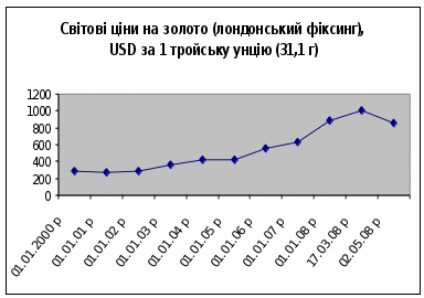 - Зараз покупка золота більш целесообразні на для отримання прибули, ніж для збереження накопичень. Тому ми чекаємо, що до кінця цього року об'єми депозитів в золоті збільшаться на 30-40%. Варто відзначити, що за останні чотири роки золото подорожчало в 3 рази. Жодна валюта миру не показала такого зростання. Я думаю, що до кінця цього року вартість золота підвищиться до $1-1,2 тис. за 1 тройську унцію. Це пов'язано з входженням економіки США в період рецесії. Долар поступово втрачає свої позиції, а золото ростиме до тих пір, поки буде слабкий долар. У той же I час зараз іноземні інвестфонди виводять активи з американської валюти і інвестують в стабільніші активи, віддаючи перевагу золоту, євро, фунт і швейцарський франк. Якщо ж економіка Європи також втягнеться в щ рецесію і почнеться світова криза, на перше місце по вкладеннях можуть вийти золото і інші матеріальні активи, наприклад, нафта. Внаслідок чого ціна на них підскочить ще більше.