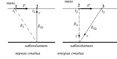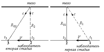 Рис. 2 Явления, происходящие в системе отсчета наблюдателя.