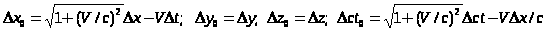 Выражая в преобразовании Лоренца скорость v>лор> через V, можно записать модифицированное преобразование, которое имеет вид [3]