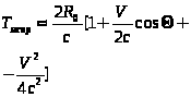 Если обозначить R>0>(t) как расстояние между наблюдателем и источником в момент приема наблюдателем светового сигнала, а R(t) как расстояние между ними в момент излучения, тогда можно записать выражение (2.6) в форме: