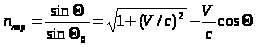 Наблюдаемая скорость и критический угол, выраженые через скорость V, имеют вид: