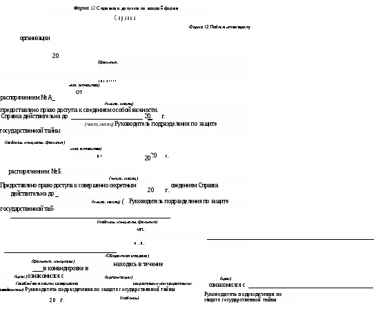 Устанавливаются три формы допуска к конфиденциальной информации должностных лиц и граждан, соответствующие трем степеням конфиденциальности информации: особой конфиденциальности, совершенно конфиденциально или конфиденциально. Наличие у должностных лиц и граждан допуска к информации более высокой степени конфиденциальности является основанием для доступа их к информации более низкой степени конфиденциальности.