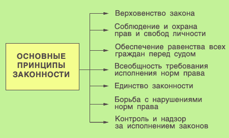 всеобщность требования исполнять нормы права. Это требование обращено ко всем без исключения государственным органам, должностным лицам, хозяйственным структурам, общественным объединениям, гражданам. Никто не может поставить себя выше закона, никакие заслуги, чины, служебное положение не могут быть основанием для беззакония;