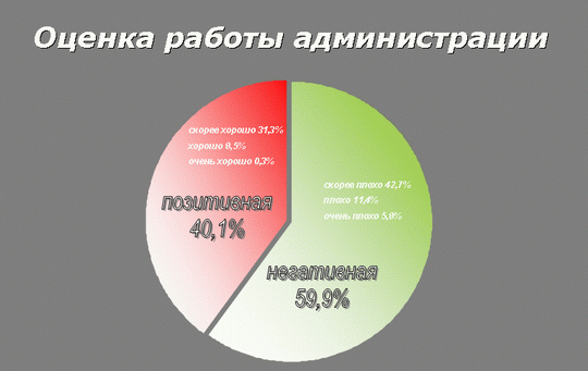 Независимо от социально - демографического статуса респондентов, наиболее типичным ответом в оценках работы администрации был «справляется со своими обязанностями скорее плохо, чем хорошо» - почти 60% опрошенных склонны давать в различной степени негативные оценки работе администрации.